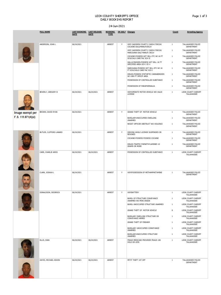Trailing 12-month operator EBITDARM and EBITDAR coverage for our core portfolio as of September 30 2021 decreased to 152 times and 118 times respectively versus 163 and 128 times. Leon county booking report november 1 2019 0 ratings0 found this document useful 0 votes11K views2 pages FULL NAMELAST BOOKING DATELAST RELEASE DATEBOOKING TYPEIN JAILCharges CountArresting Agency COOK STACI SHEVON 11212021ARRESTYPETIT THEFT1TALLAHASSEE POLICE DEPARTMENTDAVIS SANTRAY. Listed below are notes from the January 25th Leon County School Board meeting_____Rutledge Eciencia reported to the Leon County School Board regarding the current legislative session.
